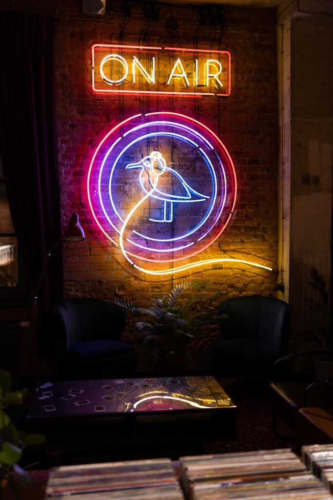 Neons são usados como elementos decorativos dentro de estabelecimentos ou até residências.