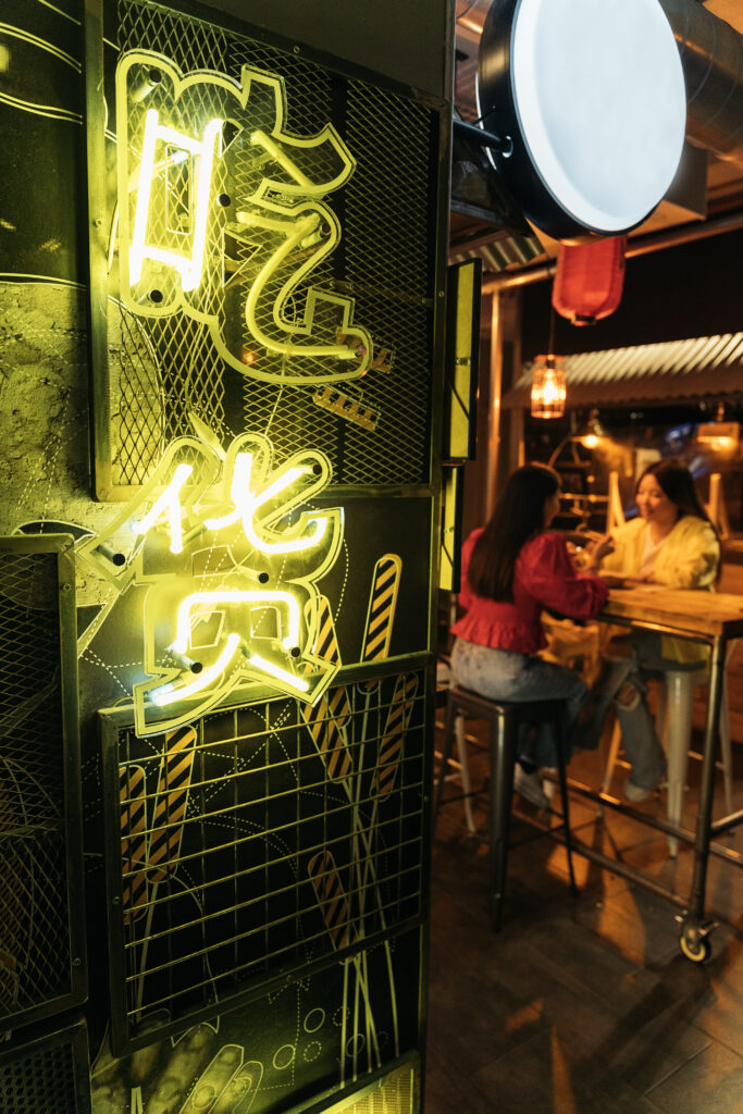 O neon também é usado para sinalizar direções ou reforçar mensagens específicas.